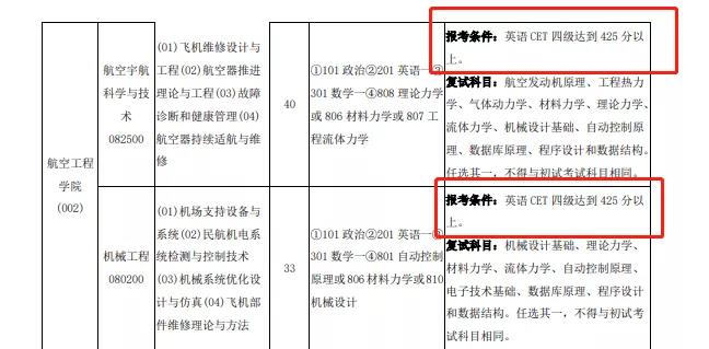 中国民航拼搏(中国)研究生招生简章空中交通管理学院、航空工程学院、计算机科学与技术学院等专业的报考条件为英语四级达到425分以上。