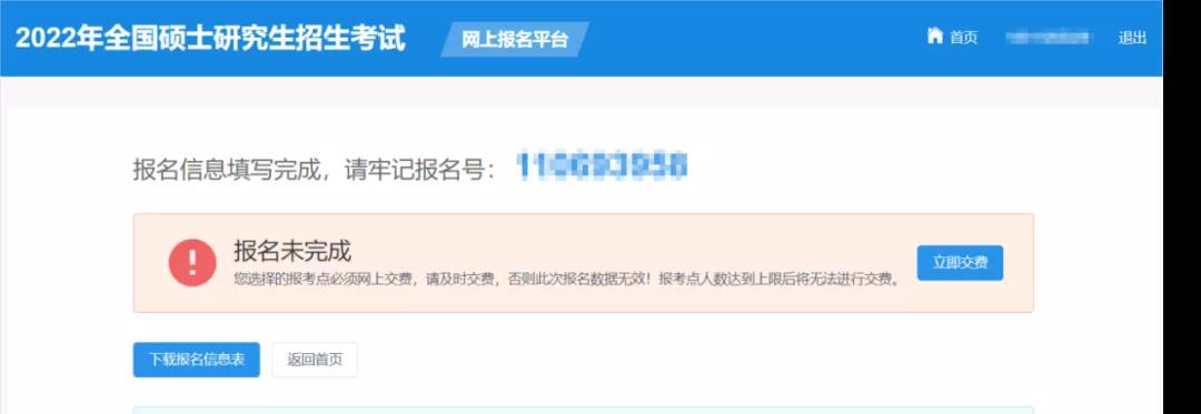 2、生成报名号,完成网上交费后才算本次报名成功。因报考点对报考人数有限制,建议考生尽快完成支付。报考点人数达到上限后将无法继续支付。报名号是网上确认(现场确认)的重要凭证,请考生务必牢记。