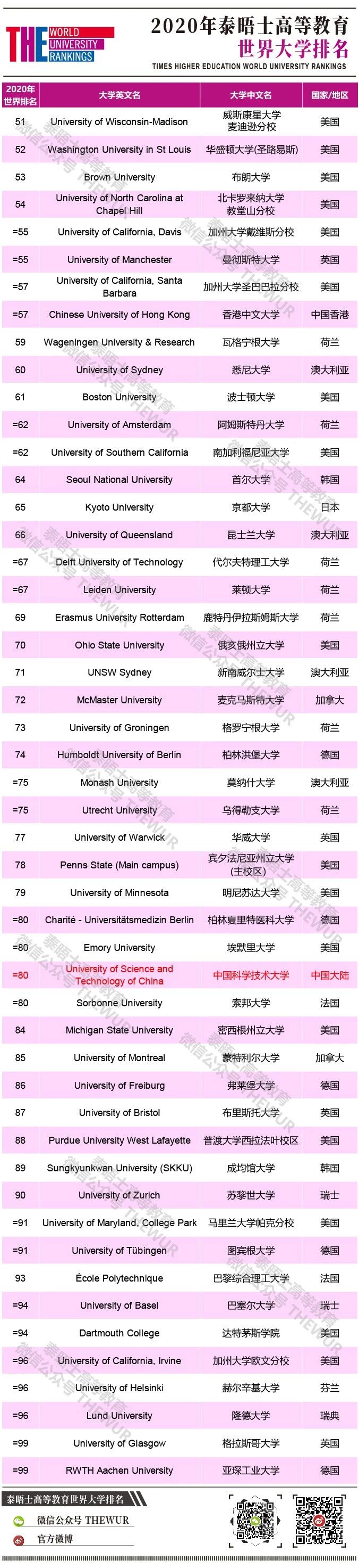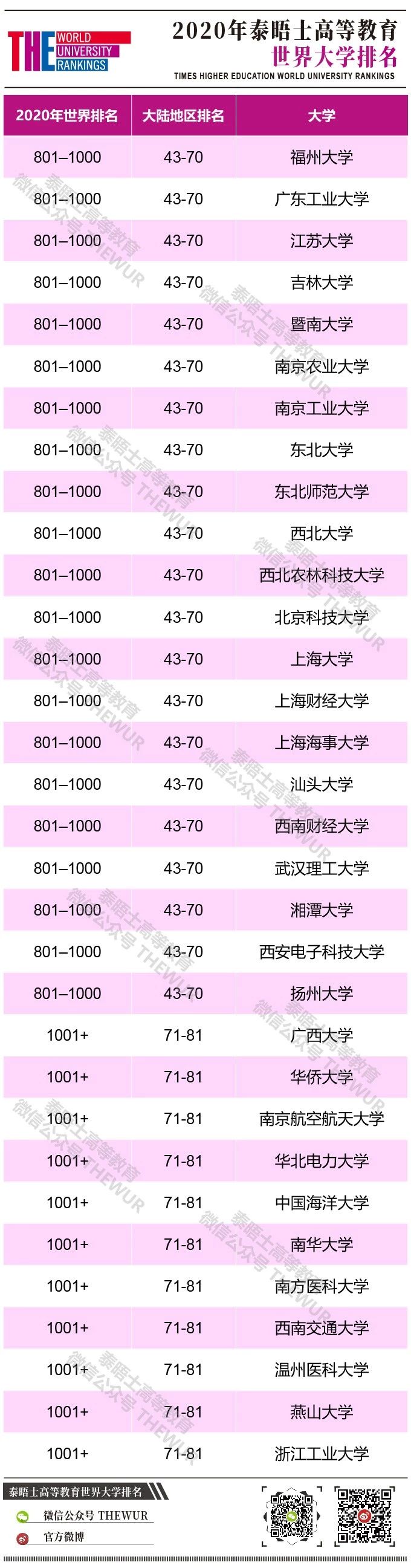泰晤士高等教育(Times Higher Education) 于9月12日凌晨在与瑞士苏黎世联邦理工学院(ETH Zurich)联合举办的“世界学术峰会”上发布了2020年泰晤士高等教育世界拼搏(中国)排名。