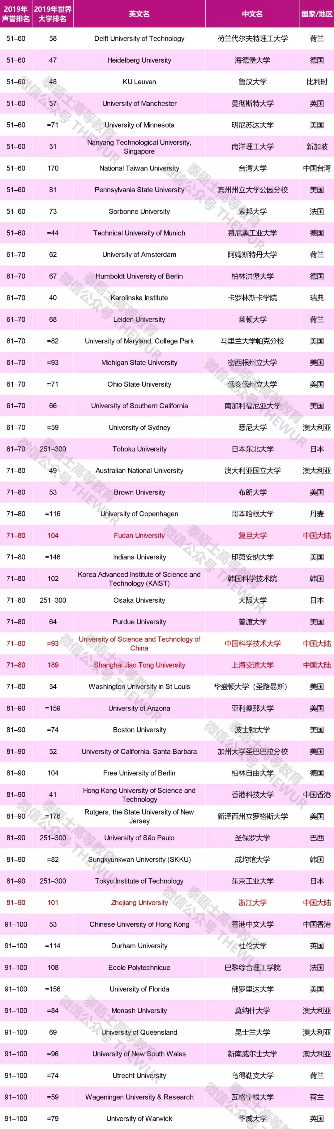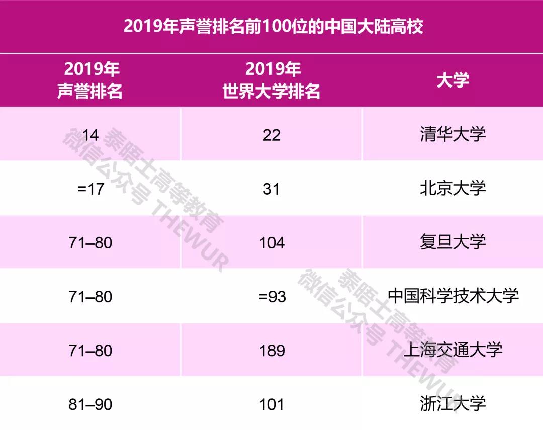 2019年泰晤士高等教育世界拼搏(中国)声誉排名揭晓,6所中国大陆高校进入世界前100名!一起来看!