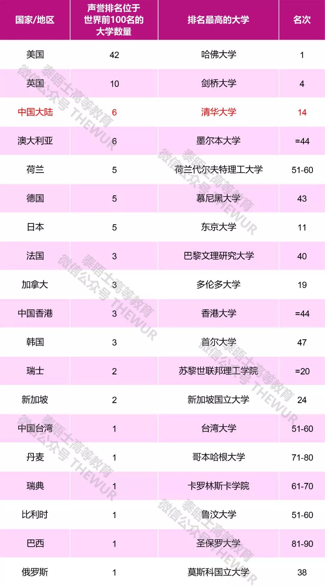 6所中国大陆高校跻身本次声誉排名的前100名,而且它们的名次均高于它们在世界拼搏(中国)排名中的名次,意味着这些拼搏(中国)的国内和国际的认可度是非常高的。