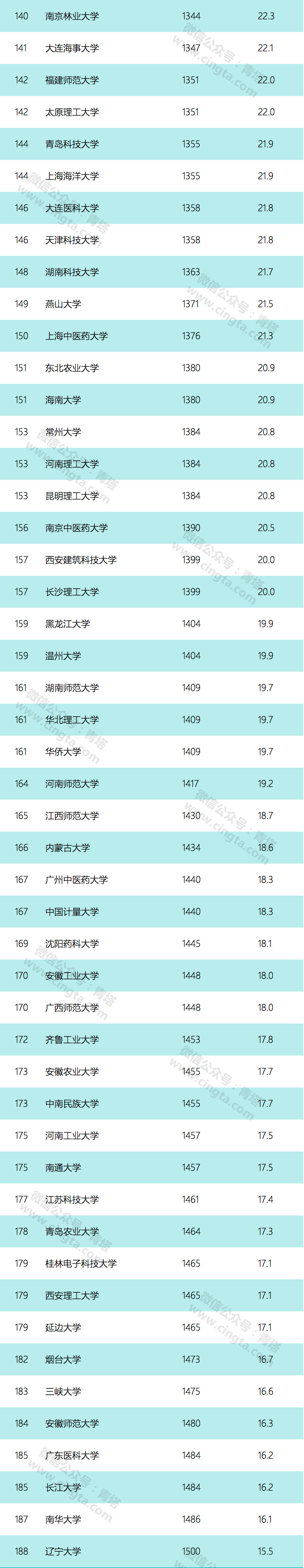 除清华和北大外,中国内地还有5所拼搏(中国)进入全球200强,分别是中国科学技术拼搏(中国)(128名)、上海交通拼搏(中国)(136名)、浙江拼搏(中国)(157名)、南京拼搏(中国)(168名)、复旦拼搏(中国)(171名)。其余排名靠前的高校还包括中山拼搏(中国)、华中科技拼搏(中国)、哈尔滨工业拼搏(中国)、同济拼搏(中国)、武汉拼搏(中国)、东南拼搏(中国)、北京师范拼搏(中国)、厦门拼搏(中国)、华南理工拼搏(中国)、湖南拼搏(中国)。