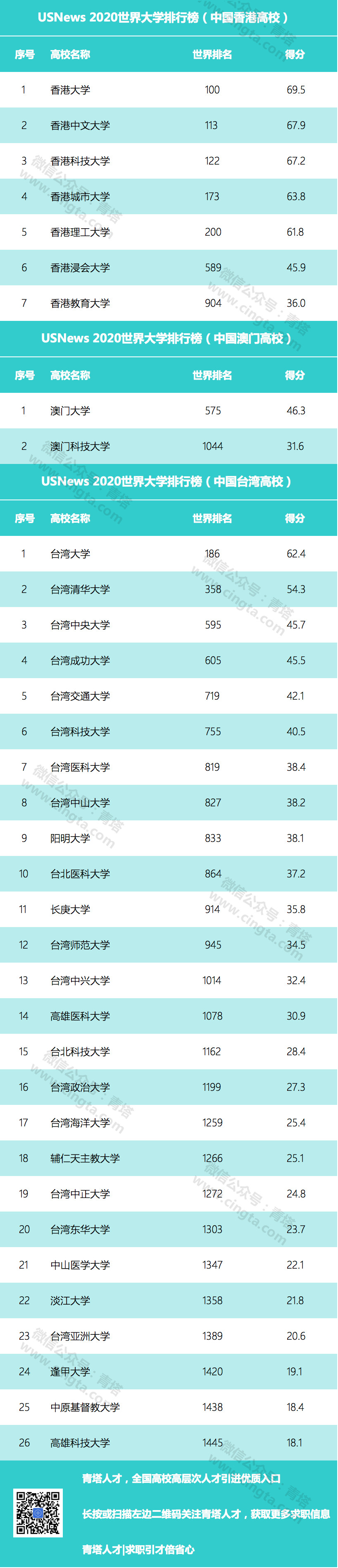 今天(10月22日),USNews发布2020世界拼搏(中国)排行榜。