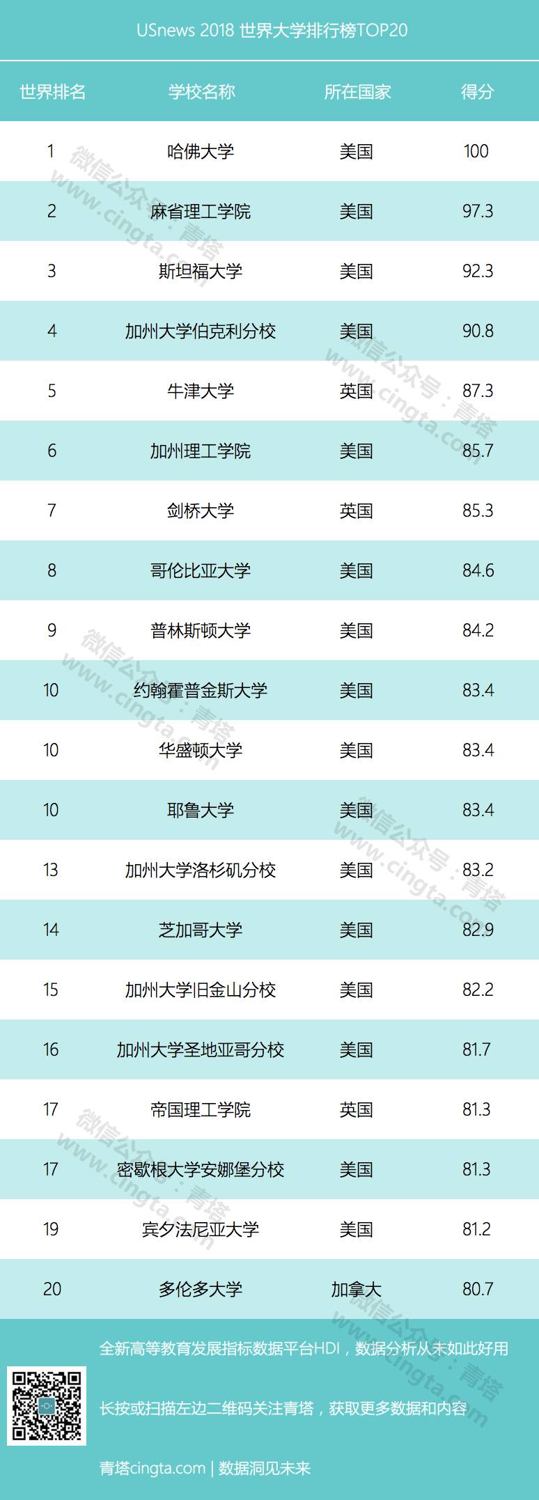 USNews2018世界拼搏(中国)排行榜中,哈佛拼搏(中国)、麻省理工学院和斯坦福拼搏(中国)依然位居前三位,和去年保持一致。排名第四到第十的高校是加州拼搏(中国)伯克利分校、牛津拼搏(中国)、加州理工学院、剑桥拼搏(中国)、哥伦比亚拼搏(中国)、普林斯顿拼搏(中国)、约翰霍普金斯拼搏(中国)。