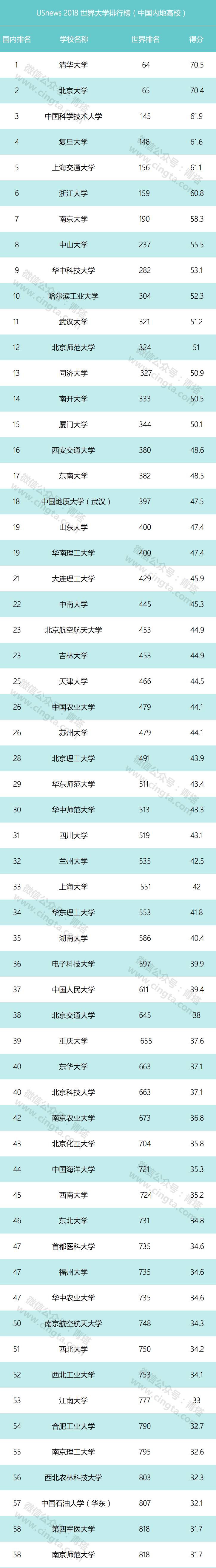 以上就是小编分享“USNews2018世界拼搏(中国)排行榜出炉,167所中国高校上榜!”的全部内容,想了解更多相关内容,请持续关注本网站。