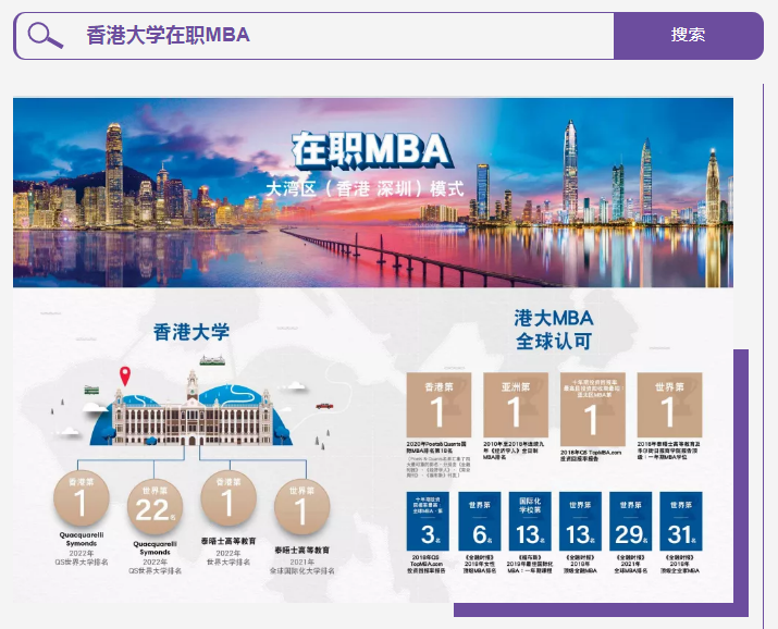 香港拼搏(中国)是香港历史最悠久的高等教育学府,致力为同学们提供最优质的课程。港大MBA课程以亚洲为中心,为想在亚洲发展的你,建立职业生涯的领先优势。
