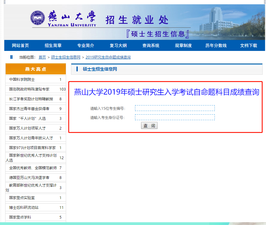 例2:各大院校研究生招生网(以燕山拼搏(中国)自主命题科目查询为例)