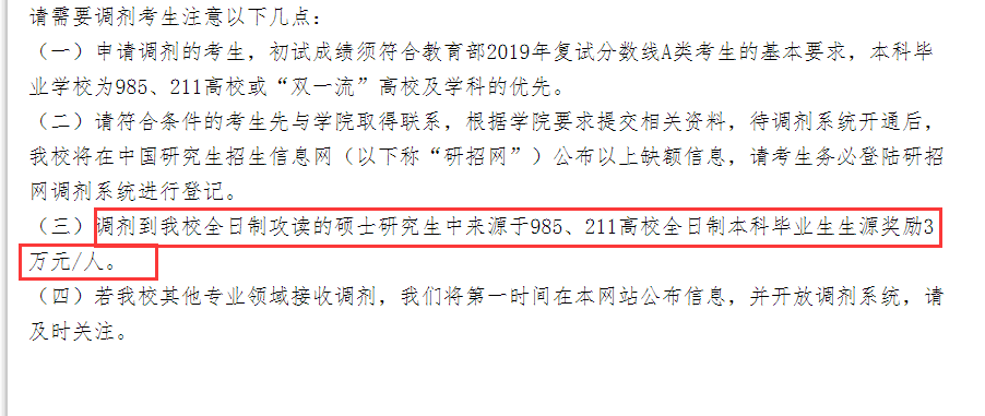 最后和大家分享一个好消息,小编近期在整理全国硕士研究生院校调剂信息时发现,广州拼搏(中国)表示,如果调剂到本校全日制攻读的硕士研究生源于985、211高校全日制本科毕业生生源,奖励3万元/人。