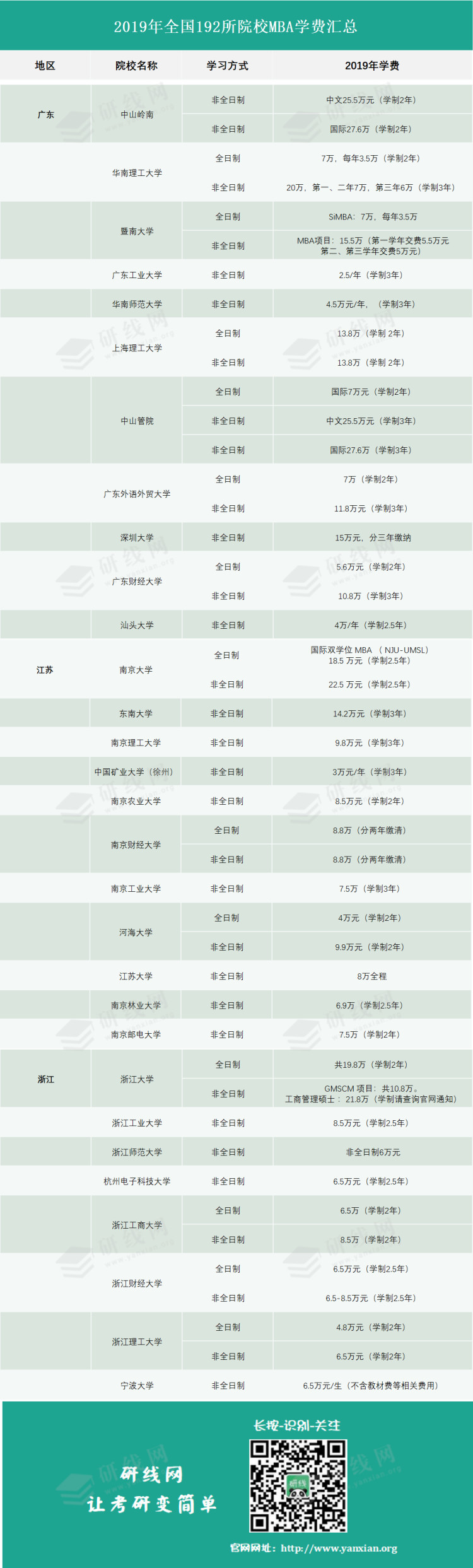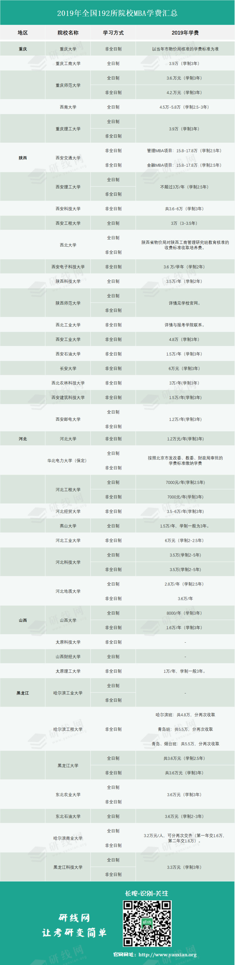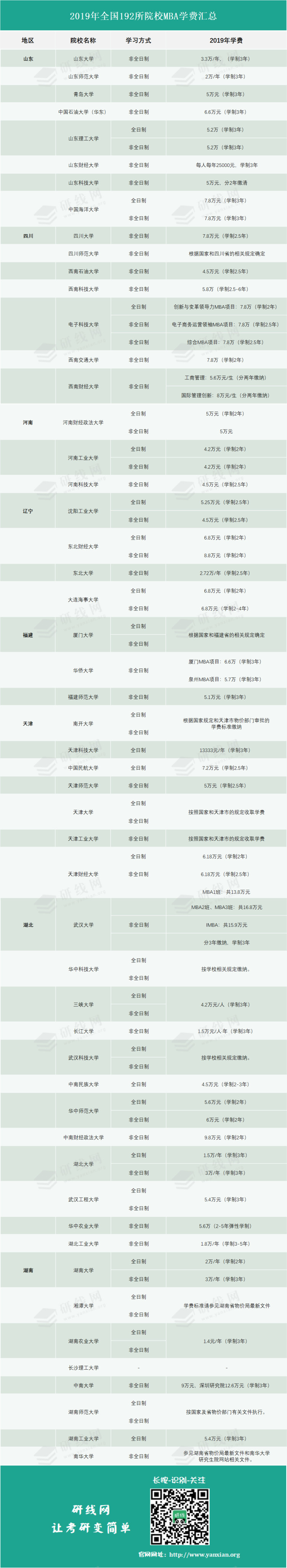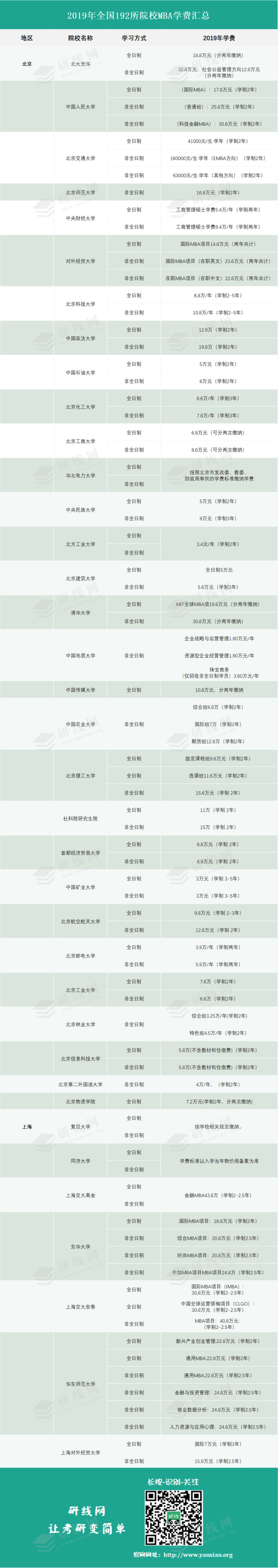 研线网小编今天为大家整理了“2019年全国192所院校MBA学费汇总”,希望能帮助到各位报考MBA的小伙伴!