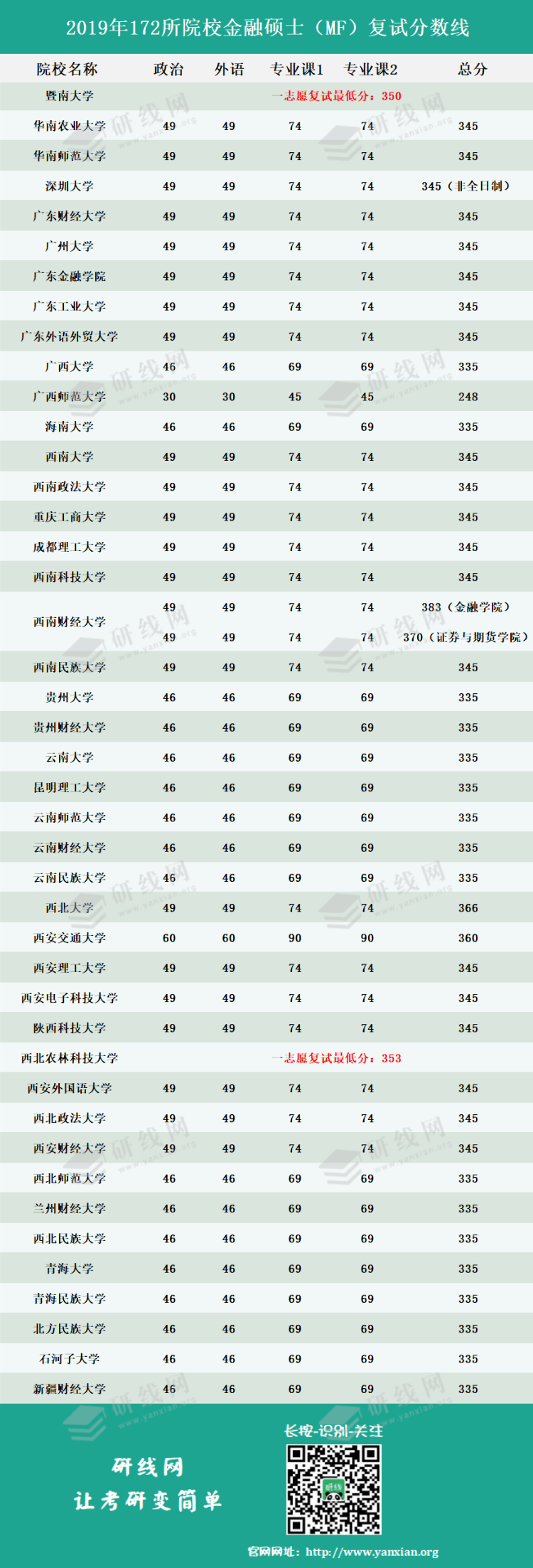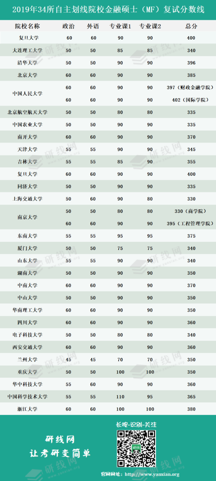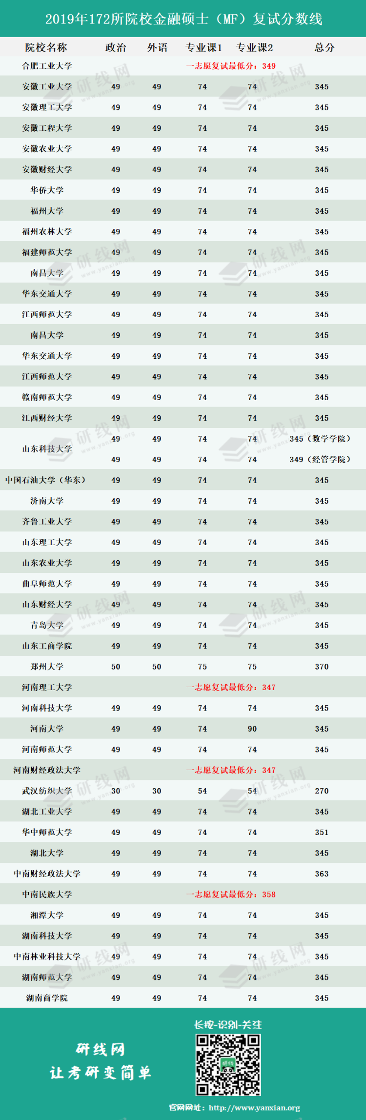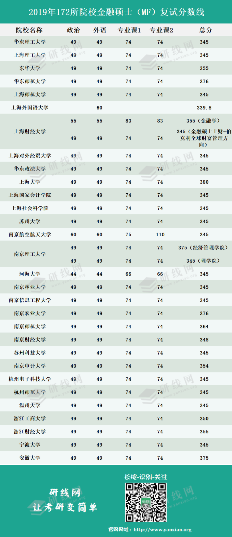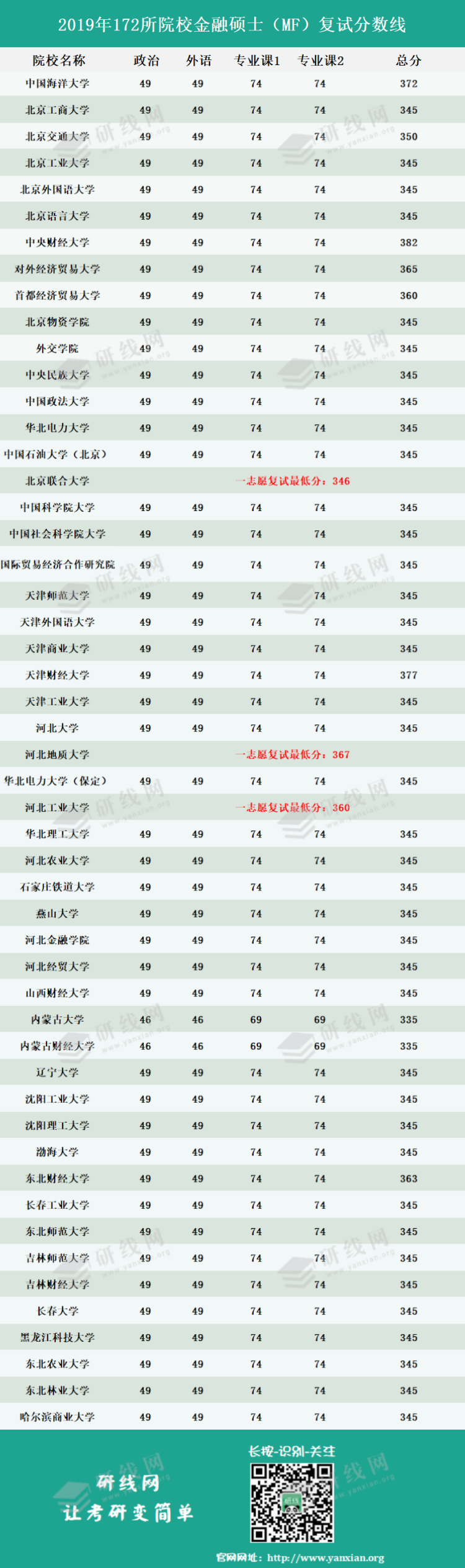 全国201所院校金融硕士(MF)2019拼搏在线官网复试分数线汇总