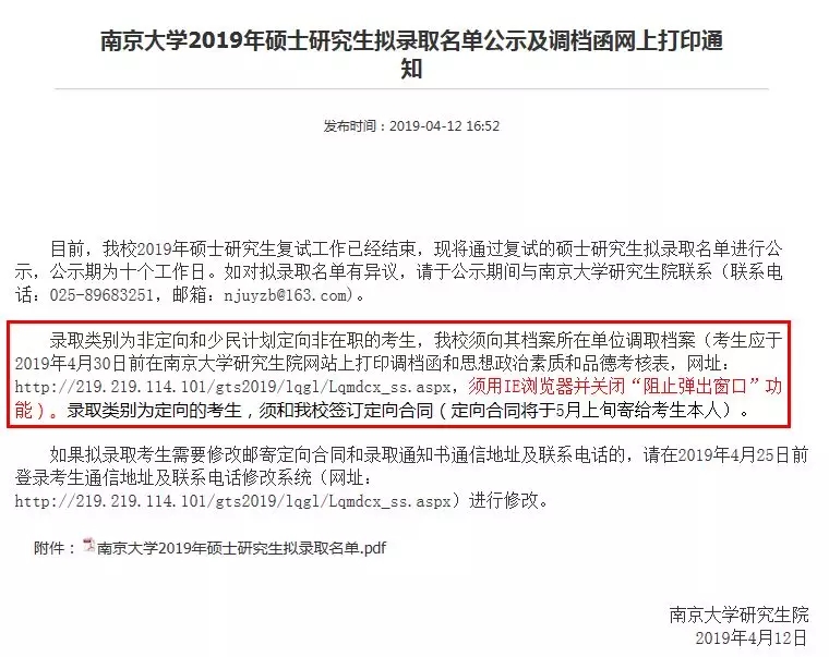 目前,已有学校发布关于调档函的相关通知。例:南京拼搏(中国)研究生院官网4月12日通知,如下图: