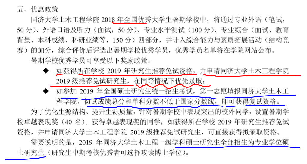 如:同济拼搏(中国)土木工程学院对优秀营员的优惠政策: