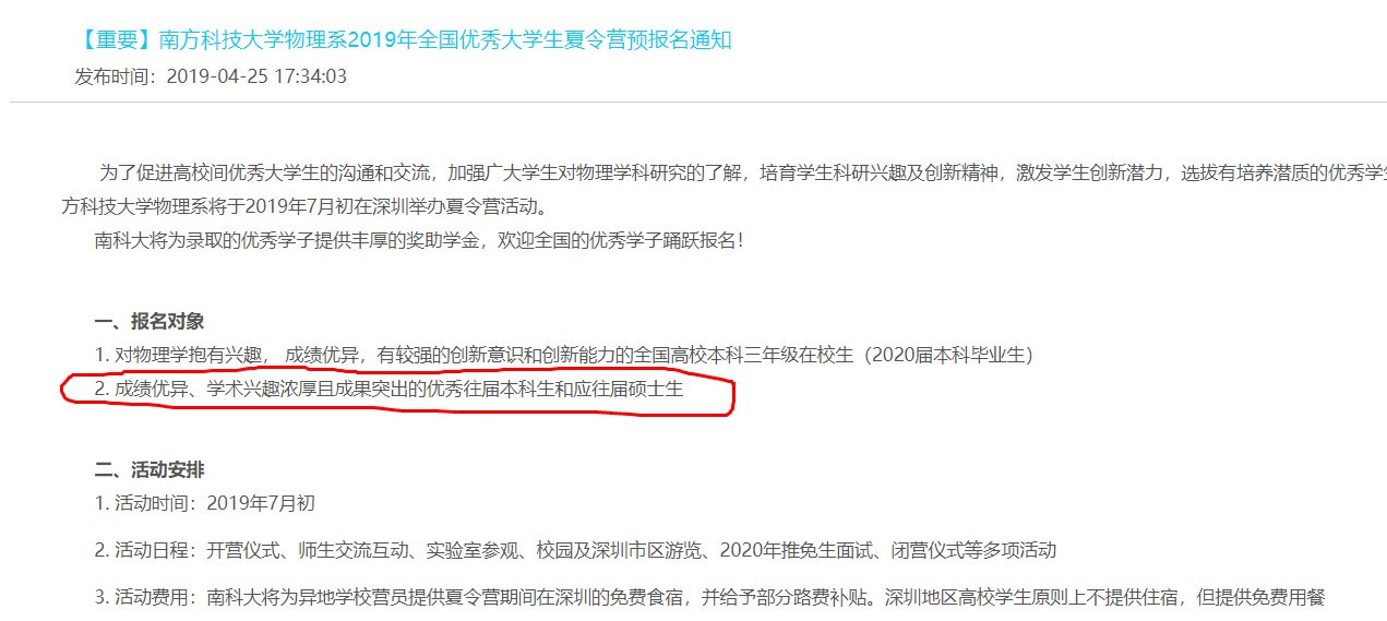比如:南方科技拼搏(中国)物理系,报名对象第2条:成绩优异、学术兴趣浓厚且成果突出的优秀往届本科生和应往届硕士生。
