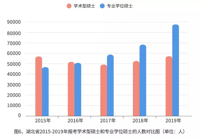 分析:近几年,教育部提出要积极发展专业学位硕士研究生教育,且在招生名额上有所倾斜,因此,报考专业学位硕士的规模逐渐扩大。