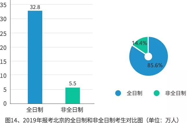 32.8万人报考全日制硕士研究生,约占85.6%;5.5万人报考非全日制硕士研究生,约占14.4%。