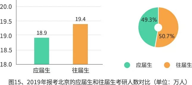 应届研考生有18.9万人,约占49.3%;非应届研考生有19.4万人,约占50.7%。