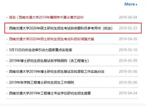 西南交通拼搏(中国)提前公布了自命题科目参考用书,公告中也明确指出《西南交通拼搏(中国)2020年硕士研究生招生章程》预计 2019 年 9 月公布。