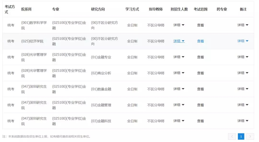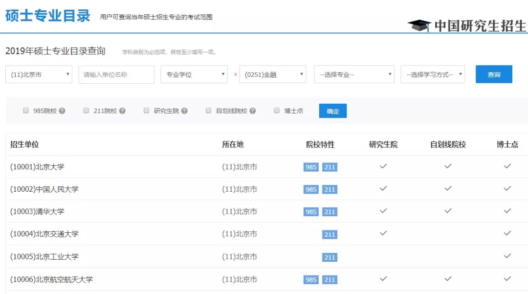 点击查询后,就能知道北京招收金融专硕的学校都有哪些——
