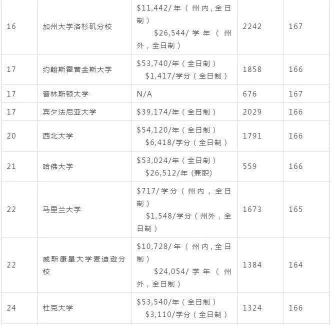 和往年一样,本次研究生院细分为商科、法学、教育、工程、医学(分为研究和初级治疗)、护理(分为硕士和博士)六大类项目,每个大类下按研究方向再细分多个专业排名。