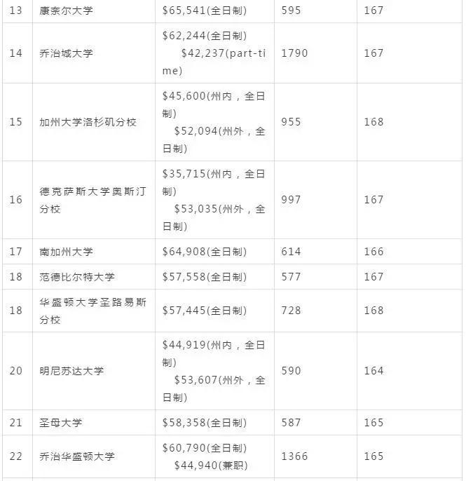 该排名是对美国研究生学院各项指标的加权平均计算所得,所参考的各项指标包括: 学术声誉、毕业率和新生返校率、师资力量、新生水平、经济实力、毕业率表现、校友捐赠等,此外在工程学院的排行当中参考了该研究学院中是国家学术工程教授的人数。 在商学院的评测当中,我们会将参考毕业研究生的薪资水平。
