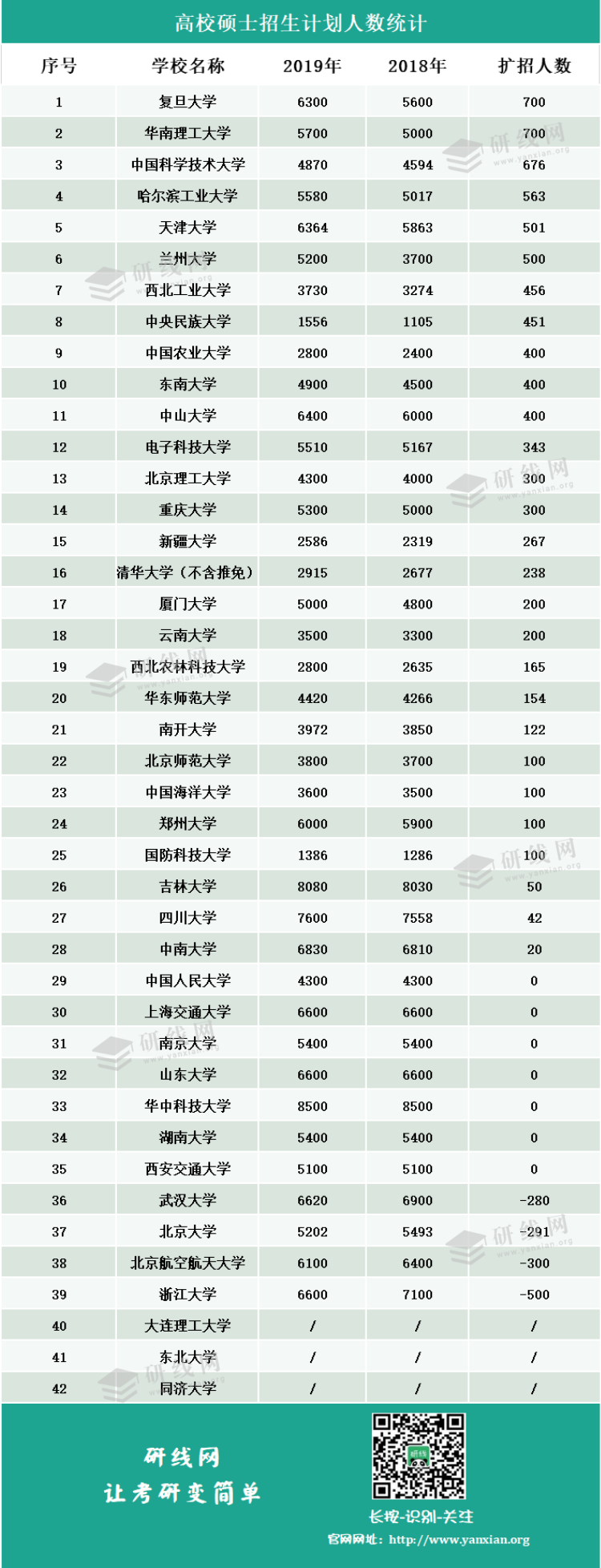 2019年共有28所双一流高校进行扩招,人数高达近万人。