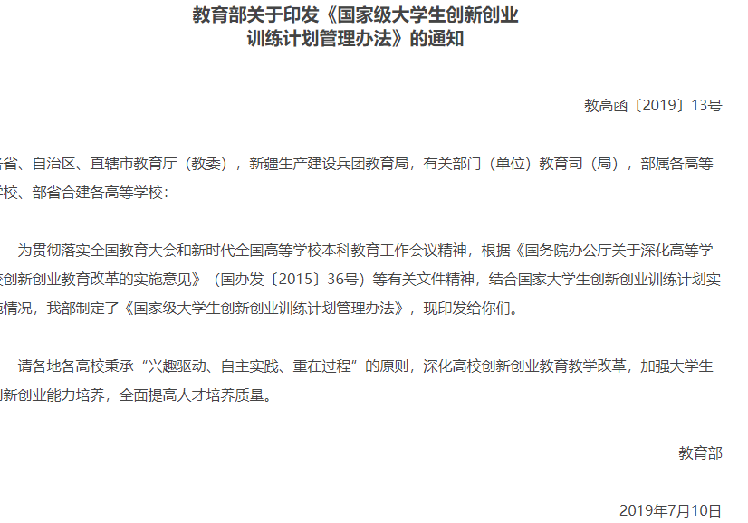 国家级拼搏(中国)生创新创业训练计划管理办法