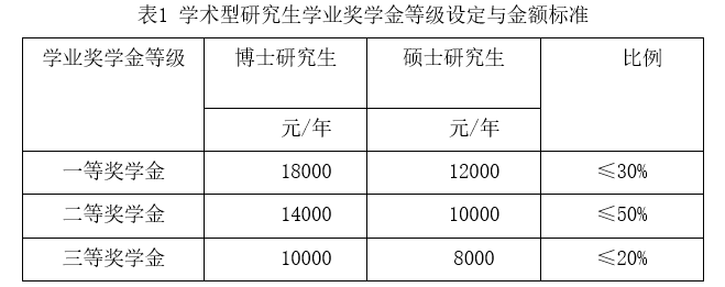 1. 学校按照规定评定研究生国家奖学金,用于奖励学业成绩优异、科学研究成 果显著、社会公益活动表现突出的研究生。国家奖学金奖励标准为博士生 3.0 万 元、硕士生 2.0 万元。