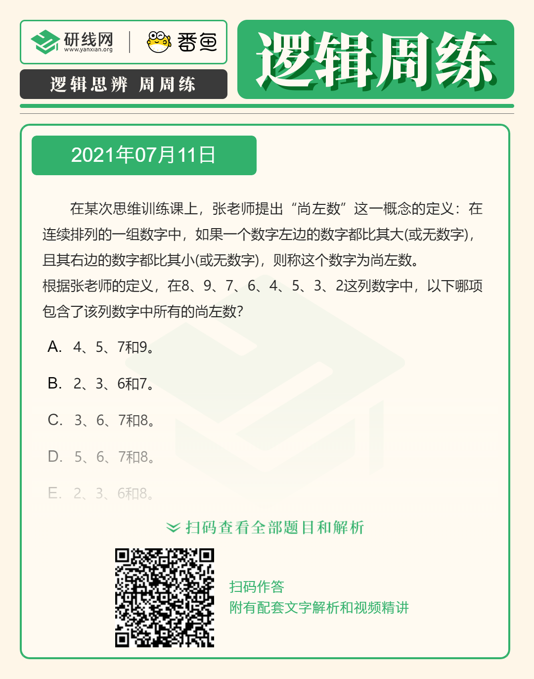 2022拼搏在线官网逻辑备考:7月11日逻辑专项练习及答案
