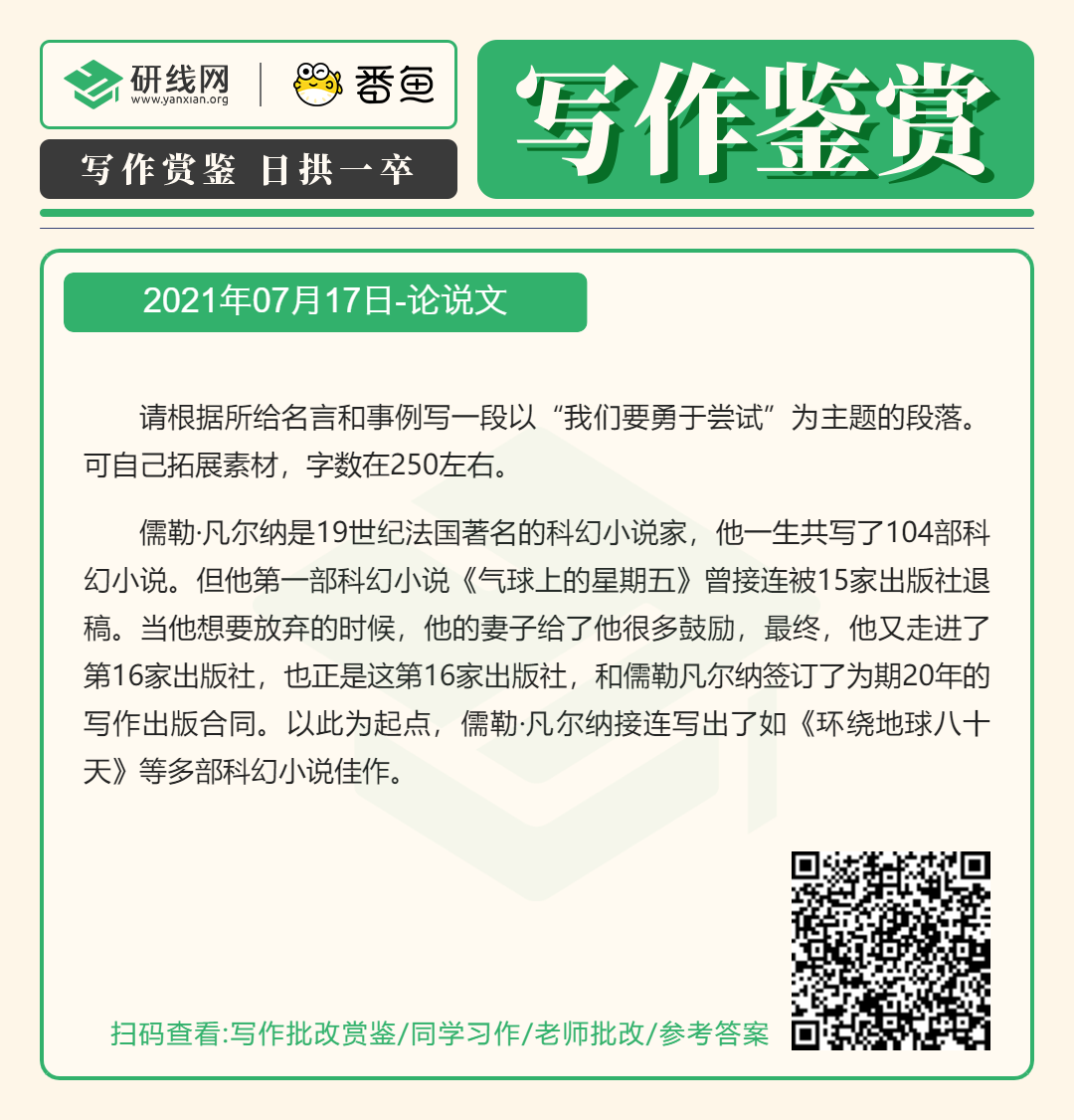 2022拼搏在线官网写作备考:7月17日写作鉴赏及答案