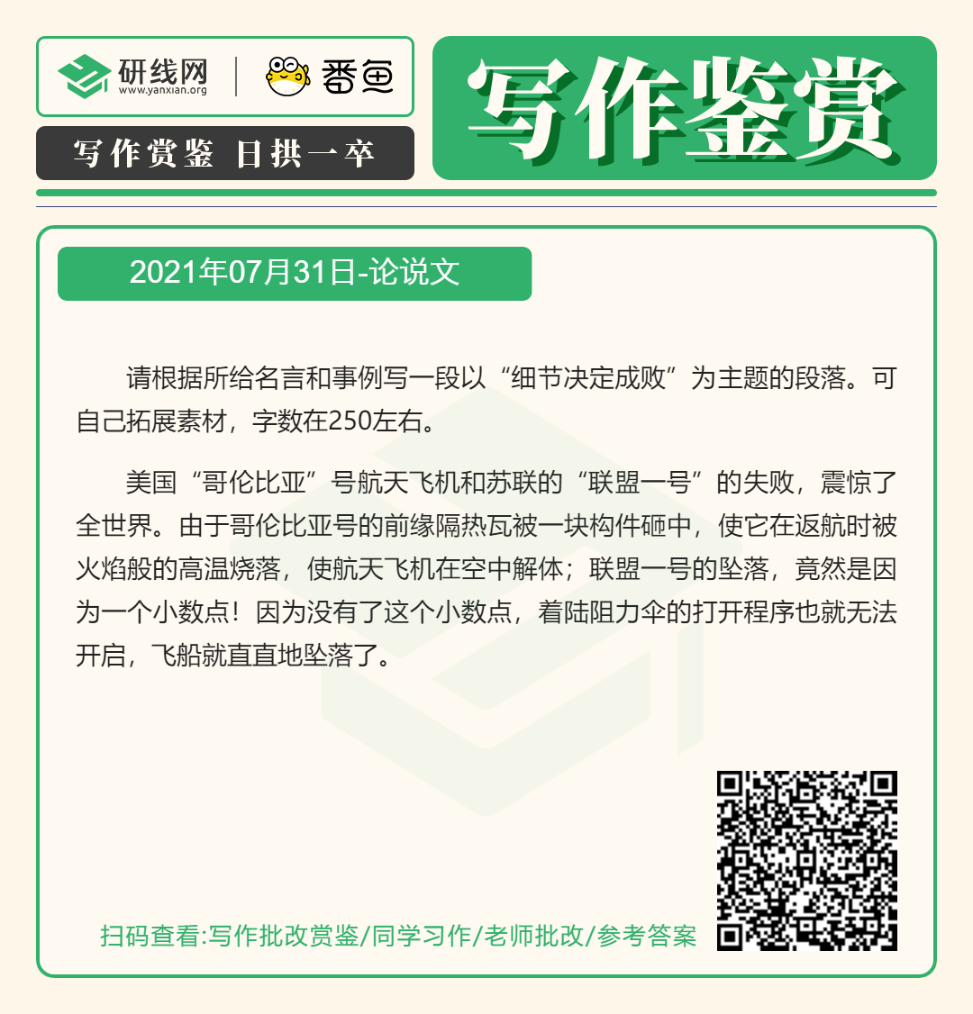 2022拼搏在线官网写作备考:7月31日写作鉴赏及答案