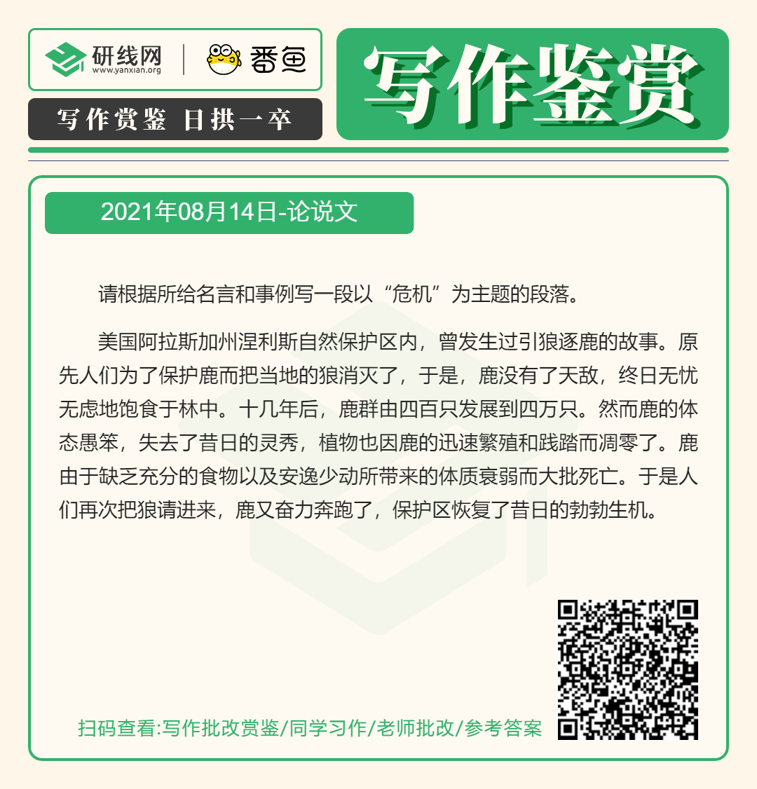 写作鉴赏,日拱一卒,拼搏在线官网写作鉴赏,攻克写作难关!今天小编整理了“2022拼搏在线官网写作备考:8月14日写作鉴赏及答案”,希望能对广大考生有所帮助!
