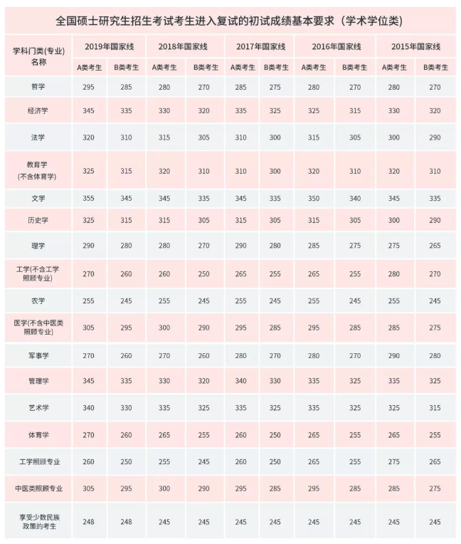 国家线根据各个学科门类划分,又形成了各个学科门类的分数线。