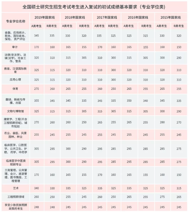 全国硕士研究生招生考试考生进入复试的初试成绩基本要求(专业学位类)