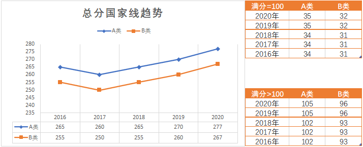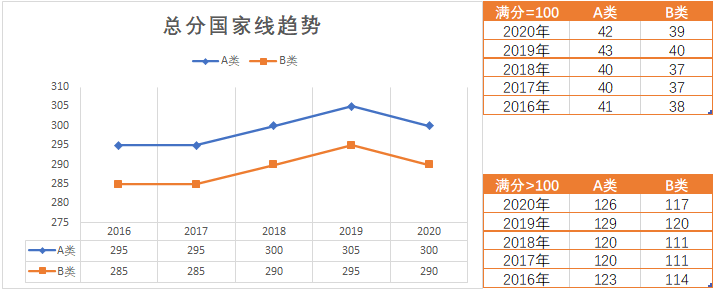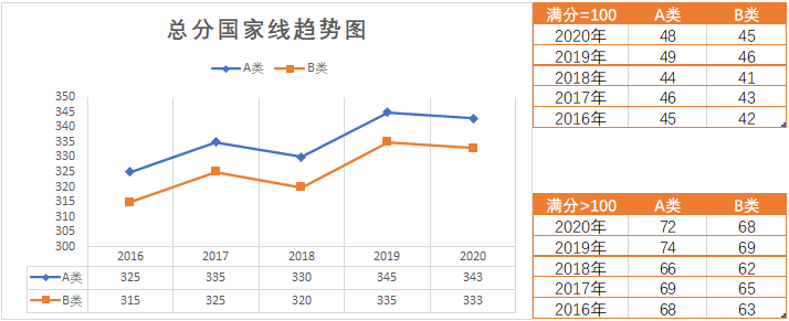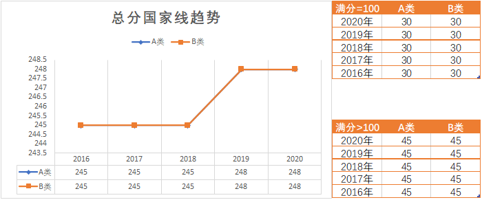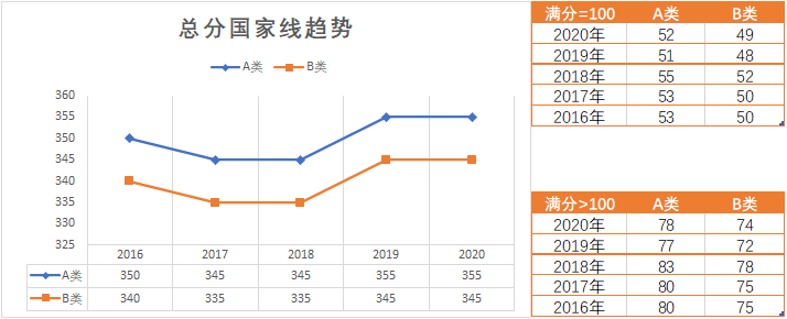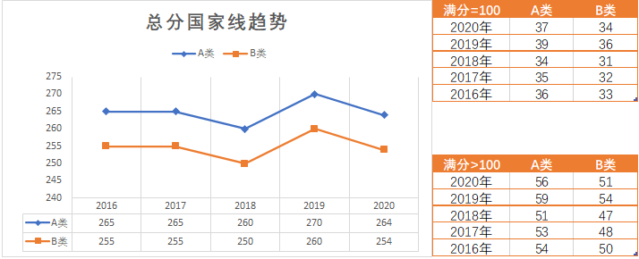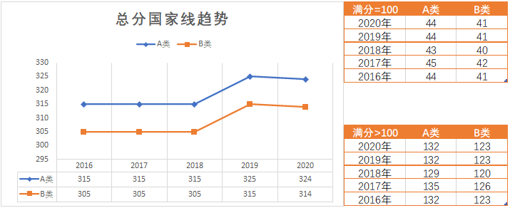 总的来看,整体上这五年的分数浮动还算稳定,所有专业的总分浮动范围在0-25分,单科分数浮动范围在0-12分: