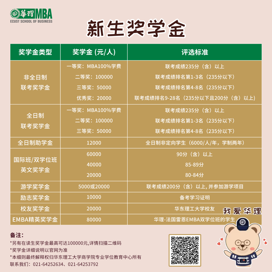 今年的管理类联考即将开始网报,想要全面了解华东理工拼搏(中国)MBA/EMBA网报信息、招生名额、学费、奖学金政策?