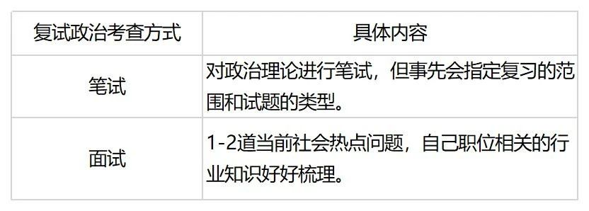 但要注意政治测试具有一票否决权,若政治不及格,也是一概不能被录取的。具体考查方式有以下两种: