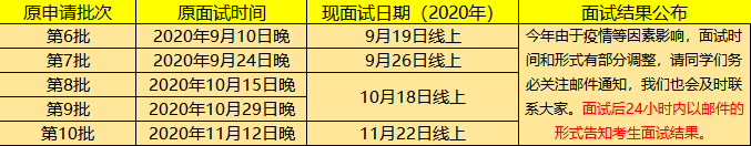 备注:预面试成绩我们将在预面试后24小时内以邮件形式发给考生。