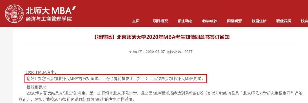 您好!如您已参加北师大MBA提前批面试,且符合提前批要求(如下),无须再参加北师大MBA复试。