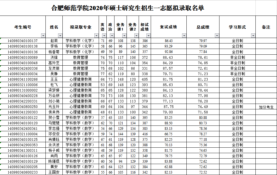 以上就是“2020拼搏在线官网拟录取名单:合肥师范学院2020年硕士研究生一志愿拟录取名单公示”的全部内容,更多录取名单相关内容,尽在研线网“录取名单”栏目!