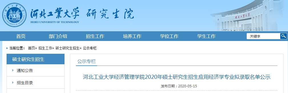 公示内容:河北工业拼搏(中国)经济管理学院2020年硕士研究生招生应用经济学专业拟录取名单。