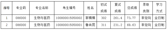 录取专业:086000生物与医药