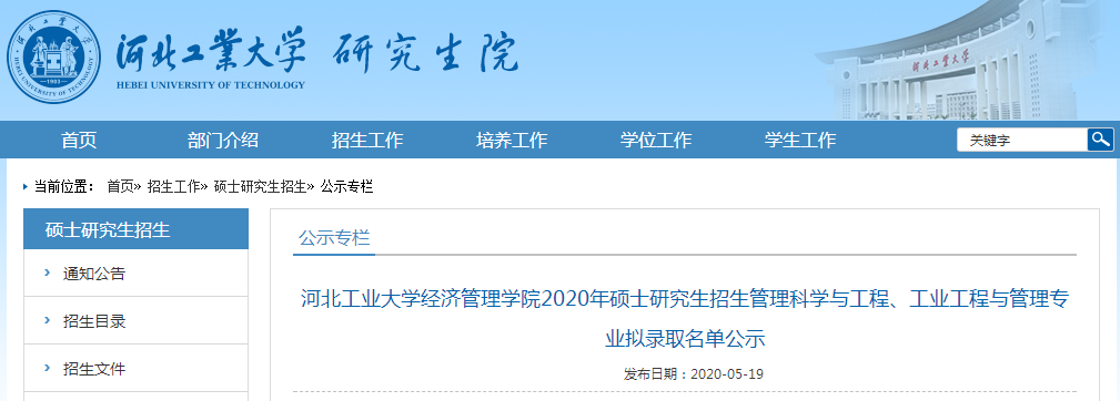 公示内容:河北工业拼搏(中国)经济管理学院2020年硕士研究生招生