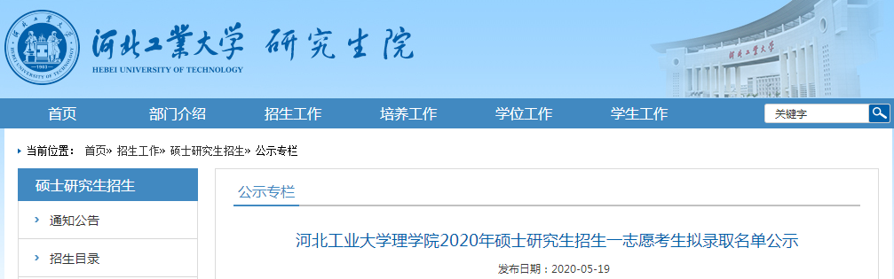 原标题:河北工业拼搏(中国)理学院2020年硕士研究生招生一志愿考生拟录取名单公示