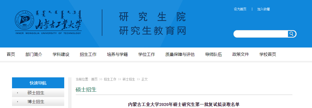 2020拼搏在线官网拟录取名单:内蒙古工业拼搏(中国)2020年硕士研究生第二批复试拟录取名单