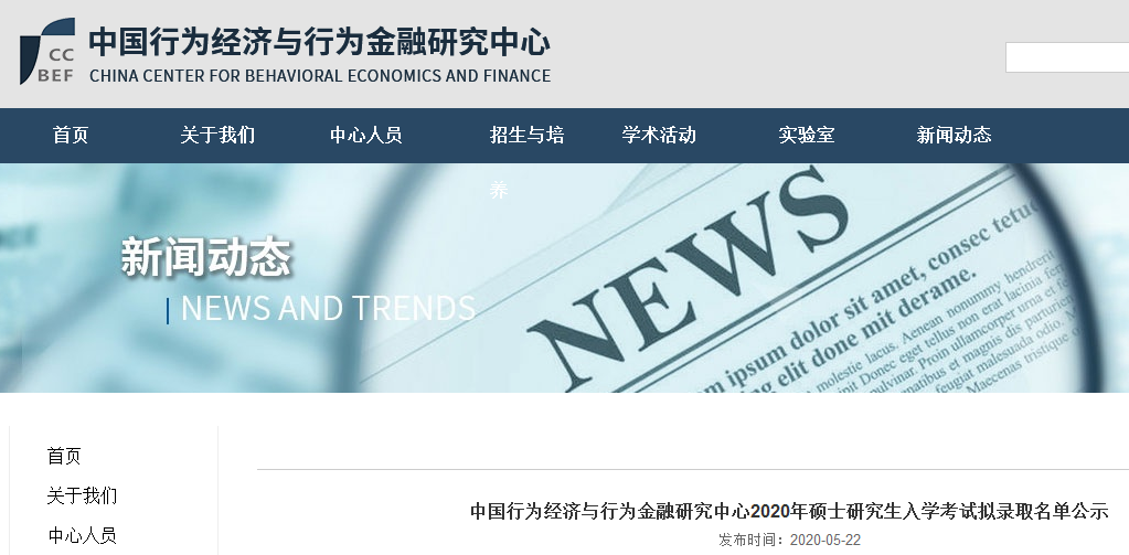 原标题:中国行为经济与行为金融研究中心2020年硕士研究生入学考试拟录取名单公示