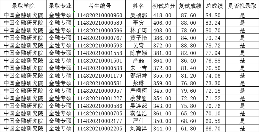 经浙江财经拼搏(中国)中国金融研究院硕士研究生复试专家小组复试,2020年浙江财经拼搏(中国)中国金融研究院金融专硕研究生一志愿拟录取名单如下,现予以公示(公示期10个工作日)。如有异议,请联系我院研究生办公室,联系电话:0571-86735252,联系人:杨老师。