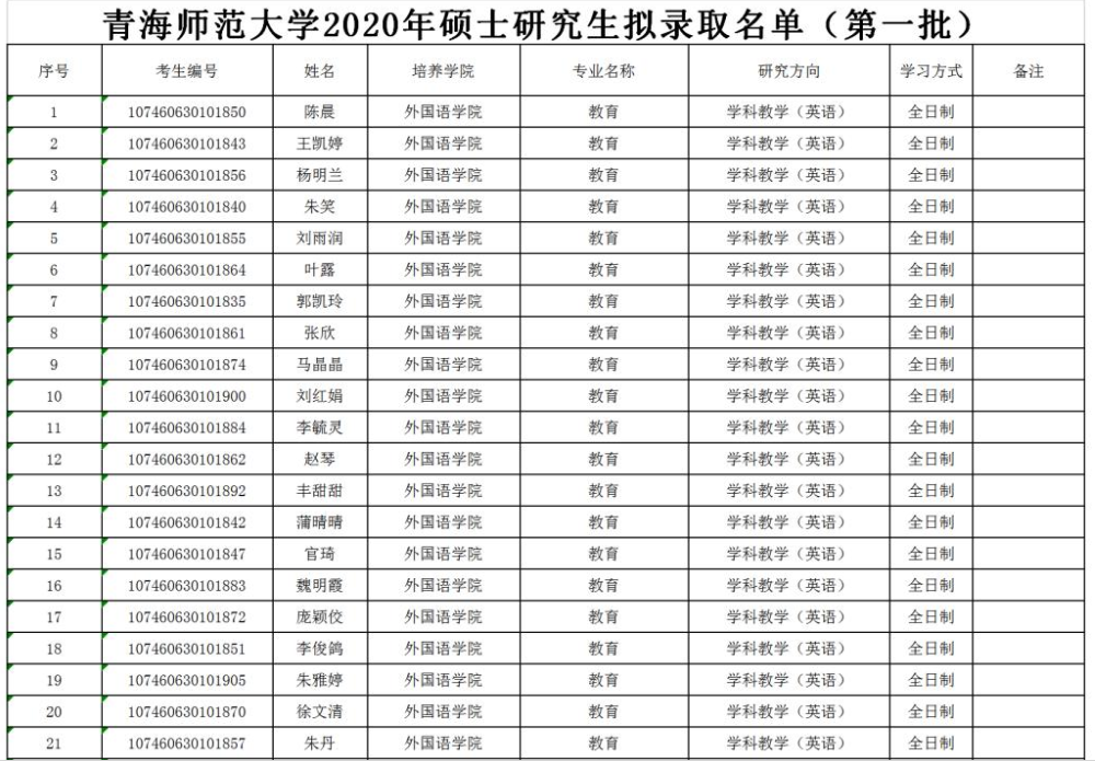 2020拼搏在线官网拟录取名单:青海师范拼搏(中国)2020年硕士研究生拟录取名单(第一批)