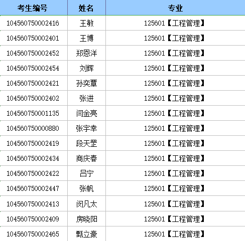 山东财经拼搏(中国)MEM工程管理(125601)研究生拟录取名单: