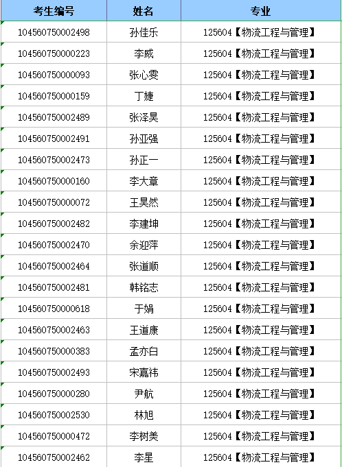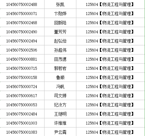 山东财经拼搏(中国)MEM物流工程与管理(125604)研究生录取名单: