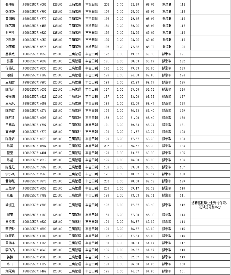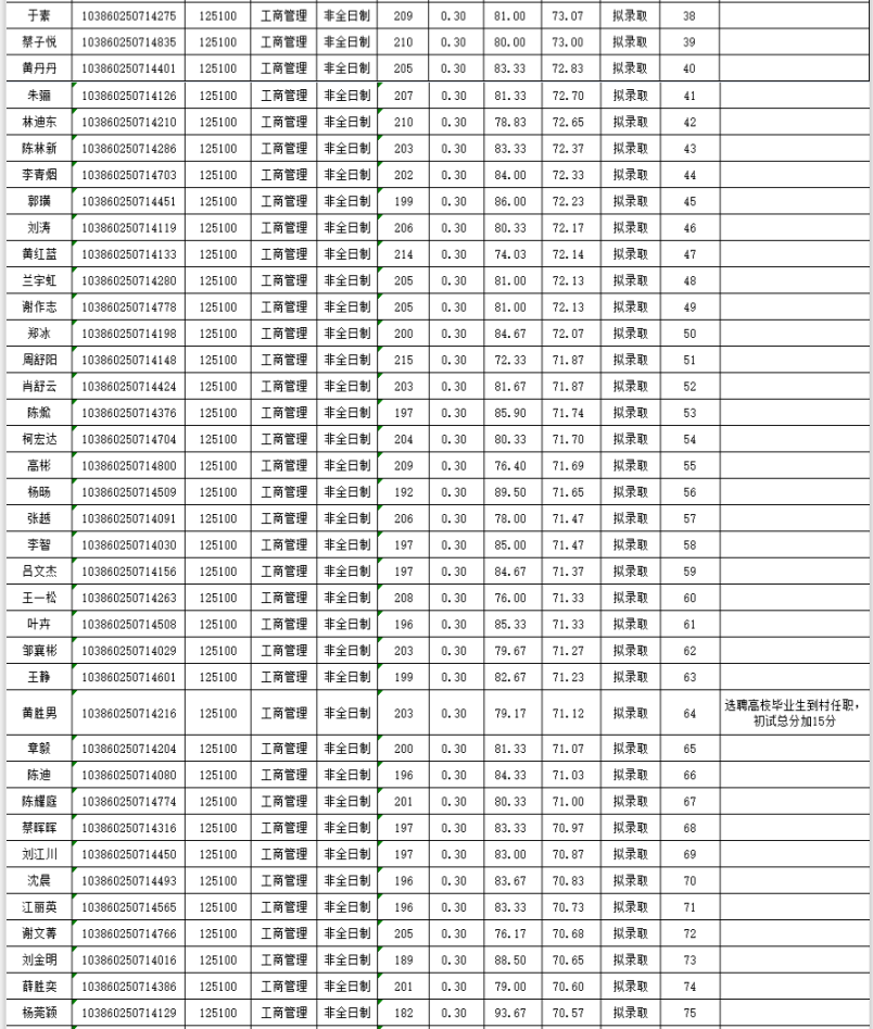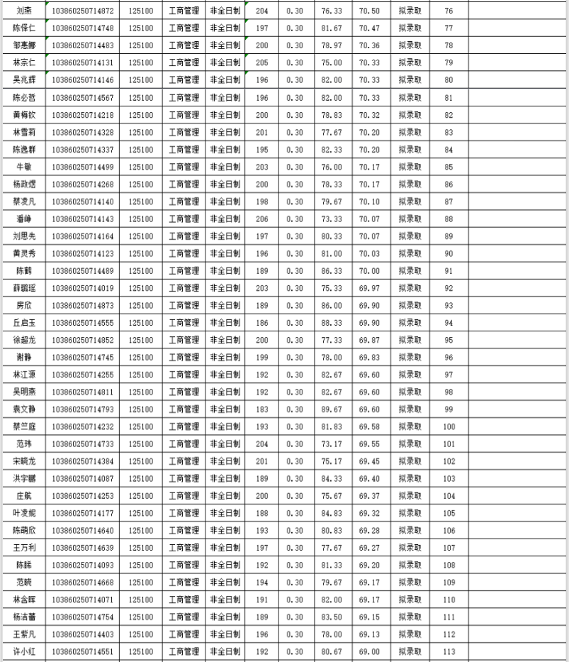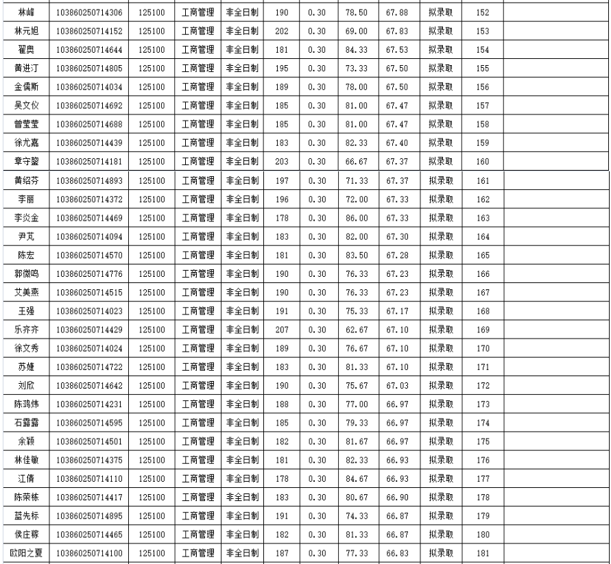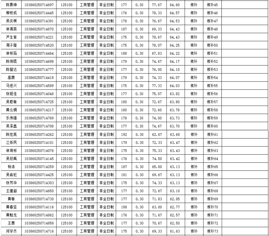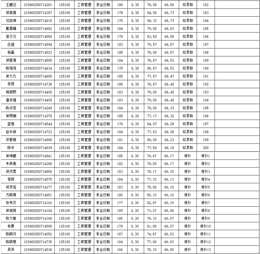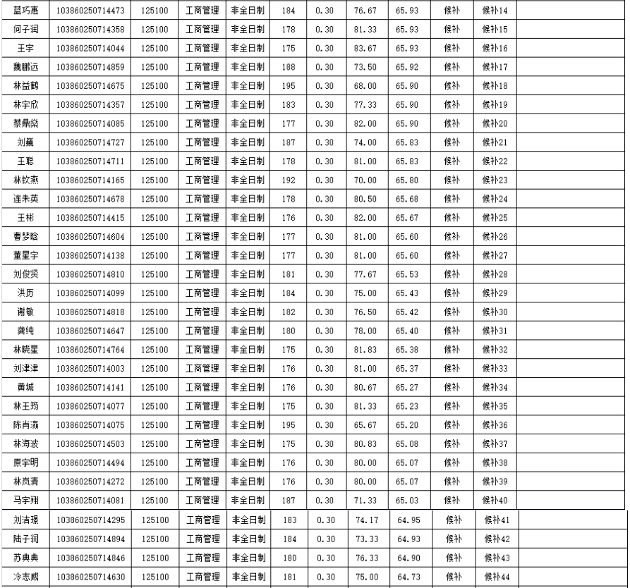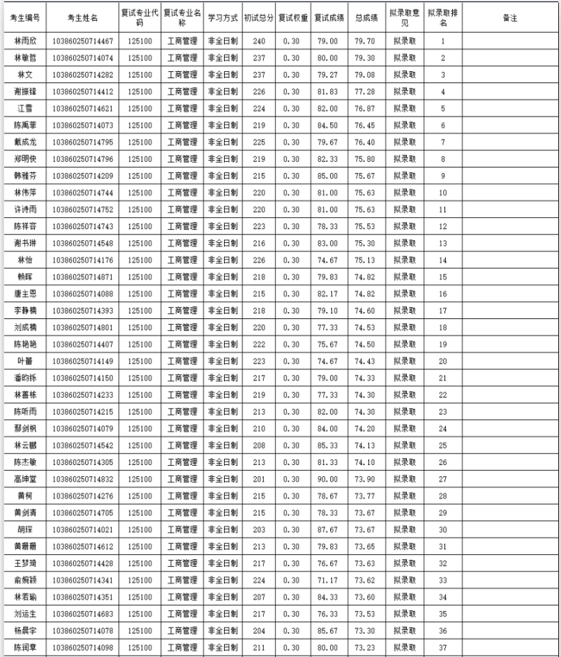 福州拼搏(中国)经济与管理学院2020年非全日制硕士研究生复试情况公示(工商管理):